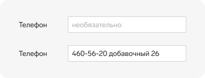 Поле ввода телефона, как и обычное поле, может быть трех размеров. Подробнее смотри в гайде поля ввода.