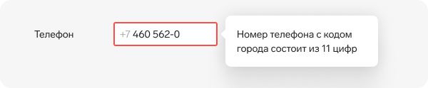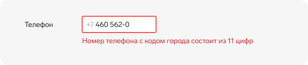 - В начале поля стоит префикс «+7», который подсказывает пользователю, что номер нужно ввести в полном формате. Префикс нельзя стереть.