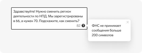 Если есть ограничение по количеству символов и есть большая вероятность, что пользователь его превысит — включите счётчик символов. Он поможет пользователю подстроиться под ограничение.