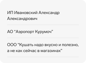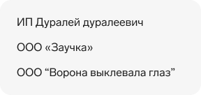 ИНН, названия организаций, ФИО, адреса электронной почты и остальные реквизиты должны быть близки к жизни. На таких данных вы будете видеть, насколько хорошо они читаются и помещаются в отведённое им место.